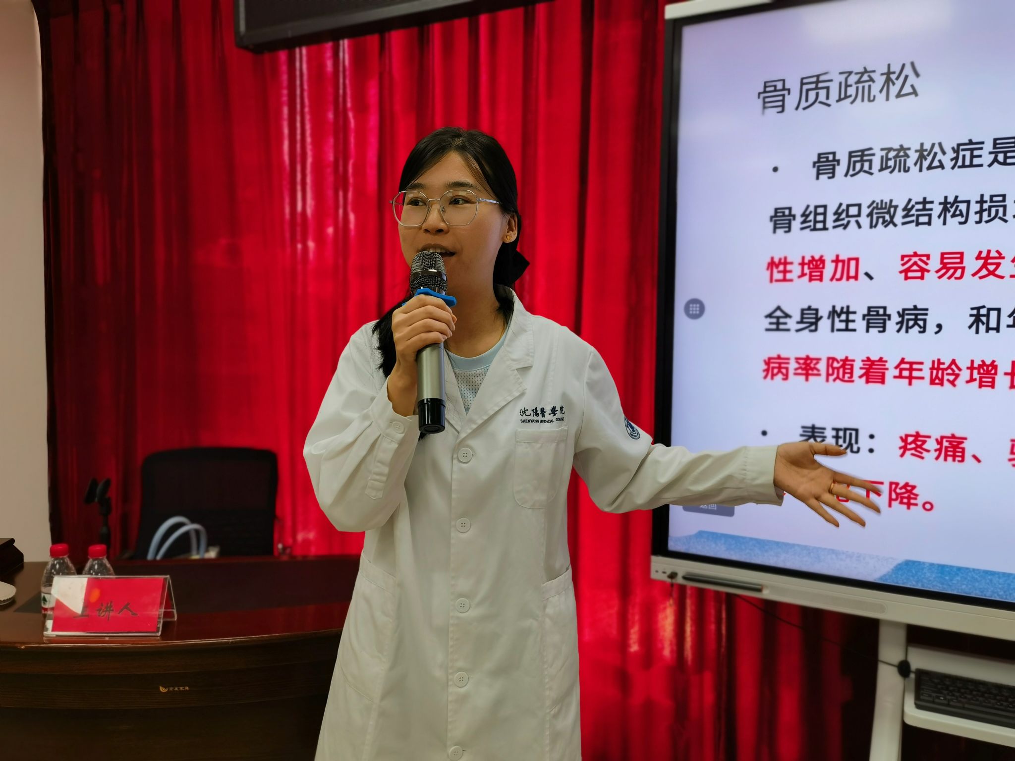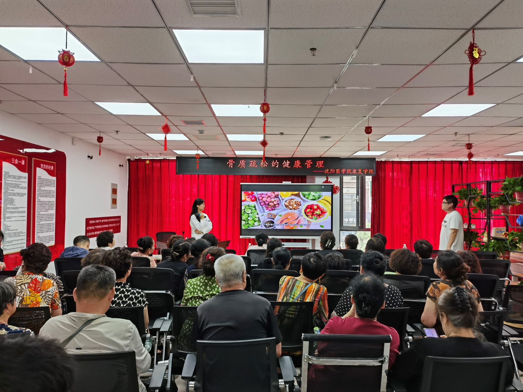 为普及骨质疏松预防知识,降低骨质疏松危害,长效落实关心关爱老年人政策,2024年7月4日,beat365官方网站党总支部赴铁西区昆明湖街道雨山湖社区开展骨质疏松专题健康知识讲座志愿服务活动。