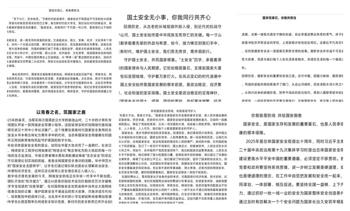 2025年4月15日是第十个全民国家安全教育日,在国家安全法颁布10周年之际,beat365官方网站紧紧围绕“全民国家安全教育 走深走实十周年”这一主题,认真落实学校相关工作安排,开展了内容丰富、形式多样的国家安全教育活动,取得了良好的教育效果。