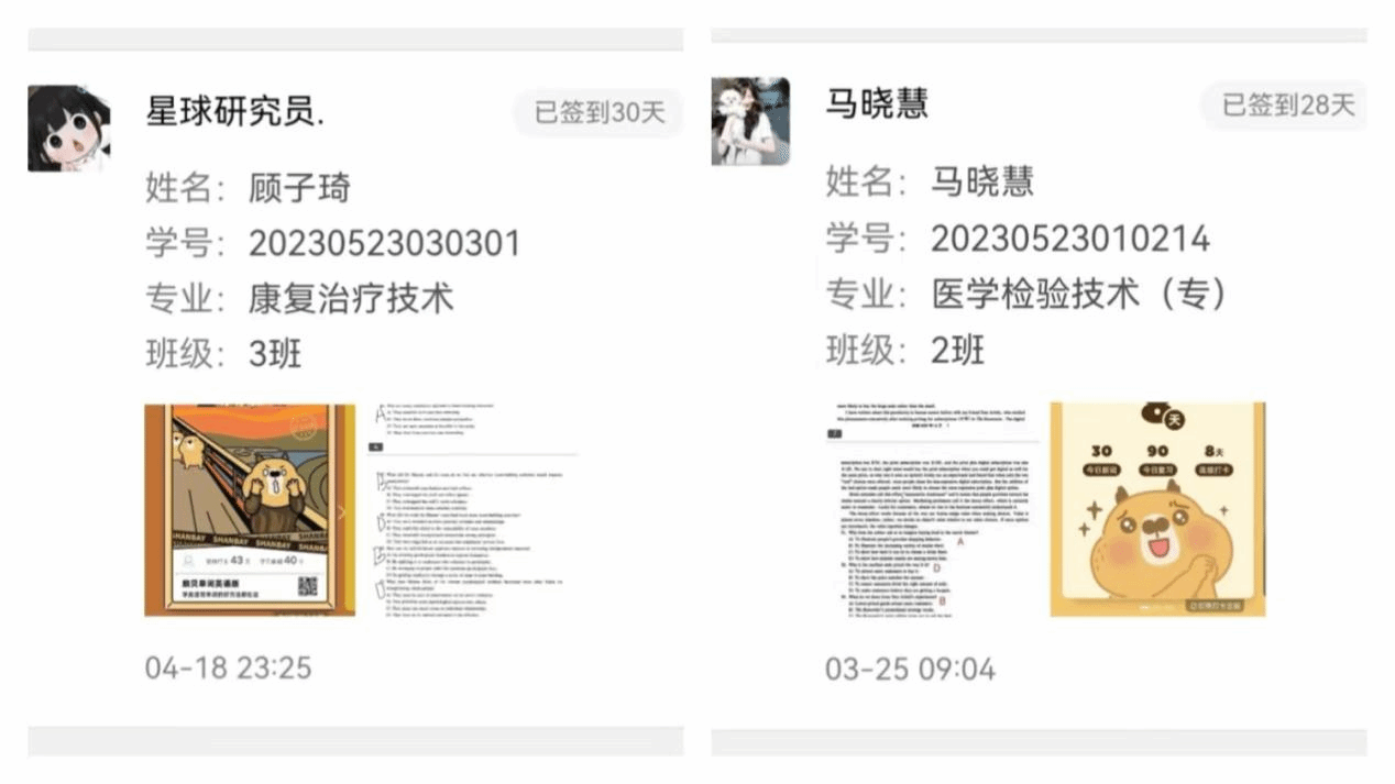 本次活动自启动以来,吸引了众多同学的积极参与,本次学习打卡活动共持续30天,参与人数近200人。参与活动之初,大多数学生只是抱着尝试的心态,但随着每日坚持打卡学习,从基础的单词背诵、听力练习,再到短文写作,在日复一日的积累中,发现自己的英语能力得到了显著提升,不仅词汇量有了明显增加,阅读英文文章时变得更加轻松自如,同时也养成了良好的英语学习习惯。