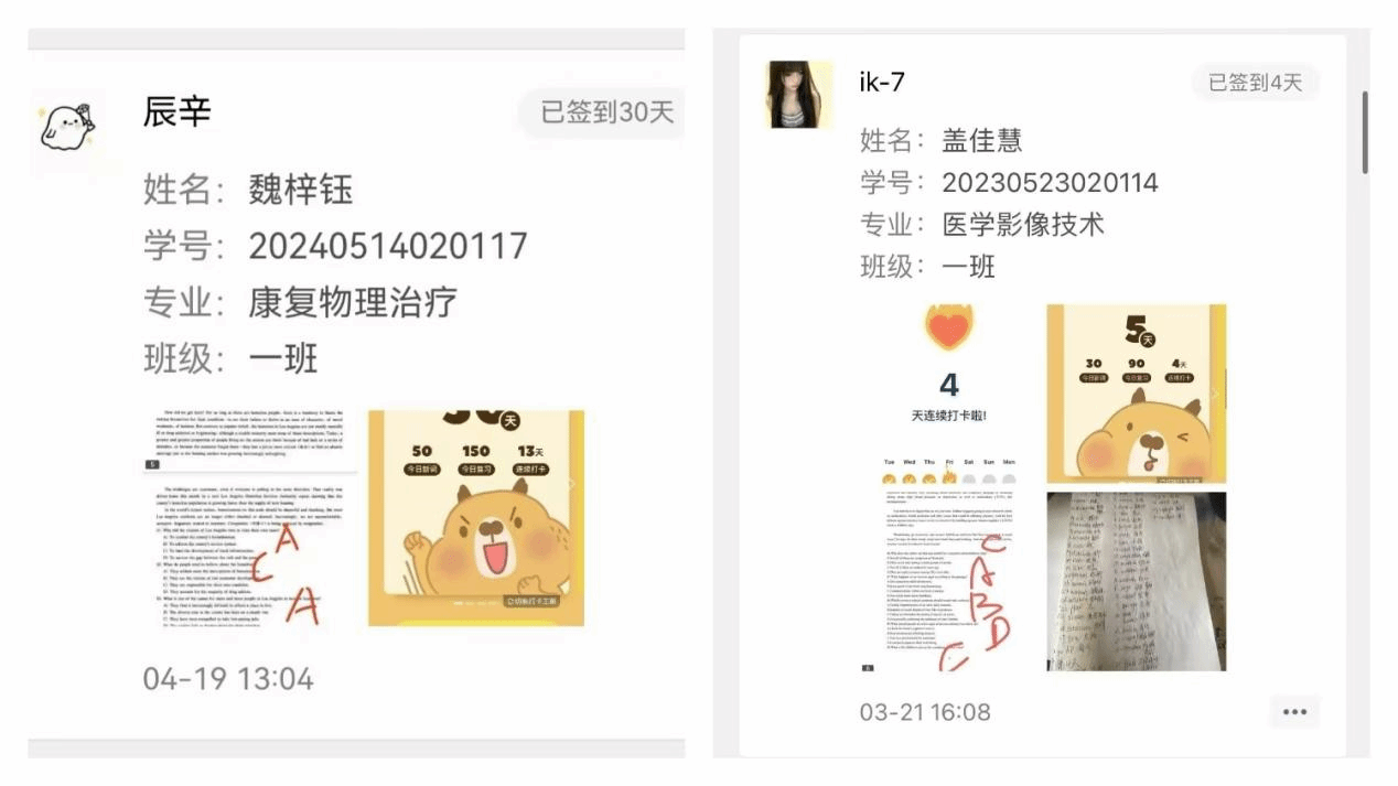 此次 “学海跬步,打卡逐梦” 英语学习打卡活动的成功举办,离不开每一位参与同学的努力。未来,beat365官方网站将继续举办更多形式多样、富有成效的学习活动,为同学们提供更多提升自我的机会,助力康复学子在学习的道路上不断进步,实现自己的学习目标。