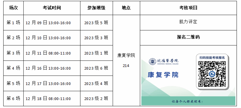 ①由于各班级考核时间不同,报名时一定按照表中时间报名对应场次!
